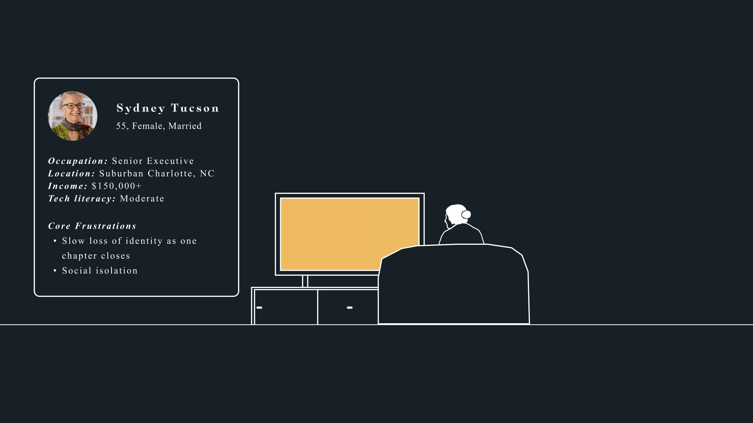 Sinking into the seat, she looks out over…