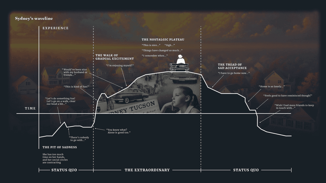 After a while, she walks back home, head hung, her memories seemingly hers to bear alone…
