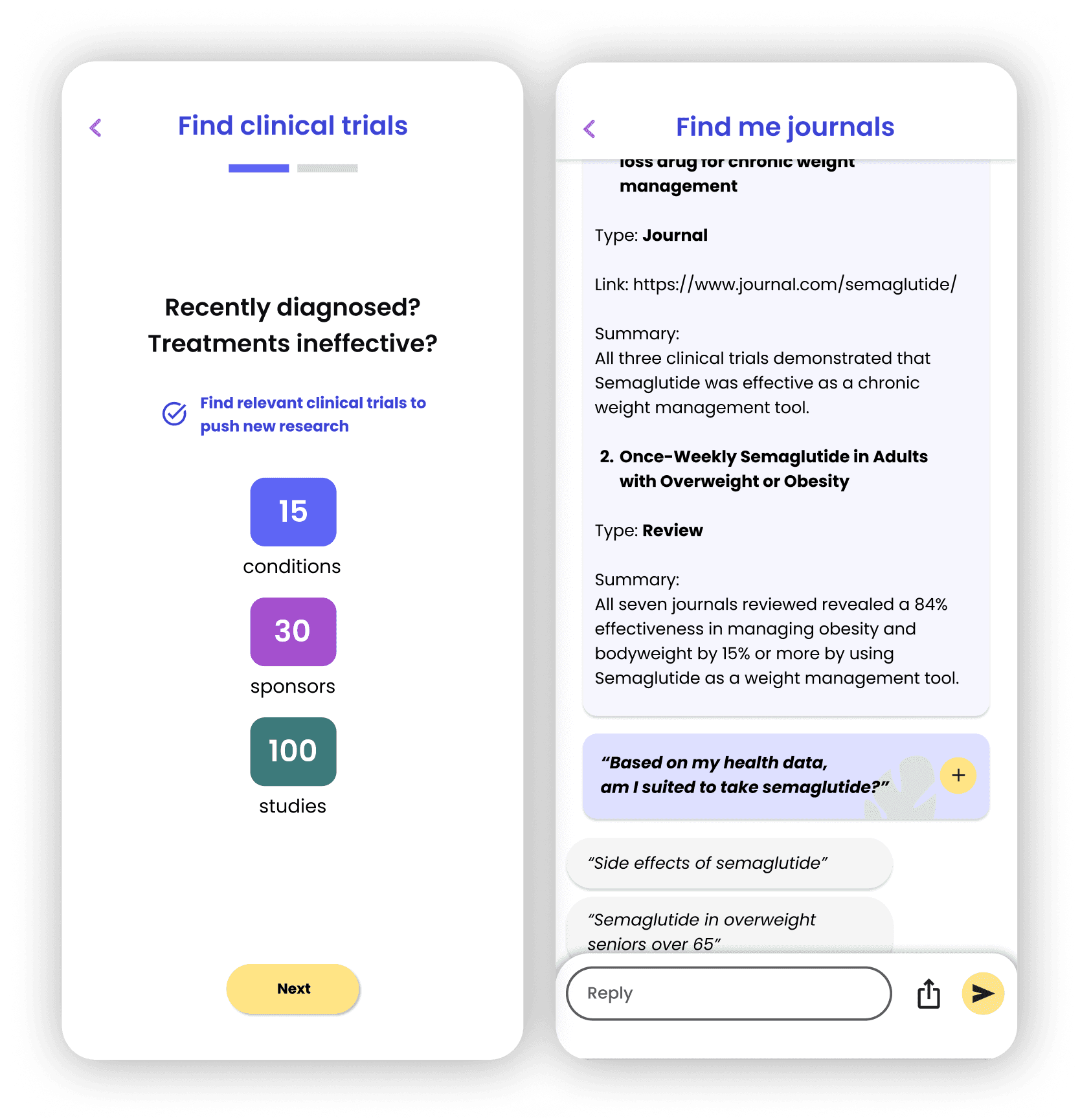 Providing users an easy way to find insights on conditions and match them with clinical trials, making health data tools more approachable and trustworthy, and ultimately, grow product user base