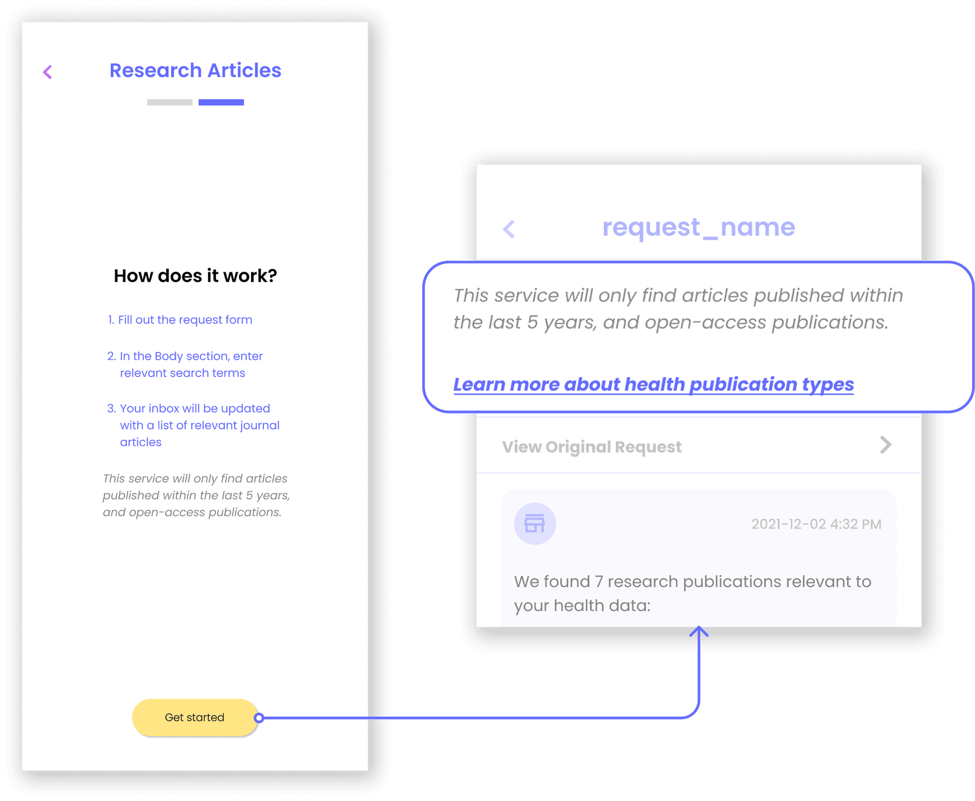 After defining the key components of this experience, I explored the following approaches to help users match with clinical trials.